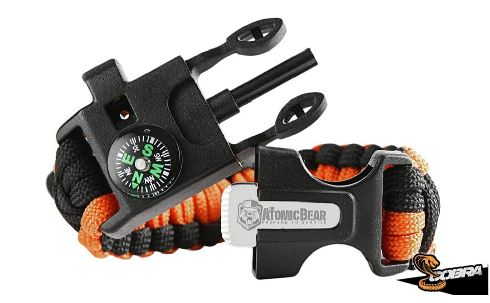 Браслет для выживания Atomic Bear Paracord Bracelet (2 штуки в комплекте) – это выполненный из прочного и легкого шнура комплект, состоящий из двух одинаковых наборов инструментов 4 в 1.