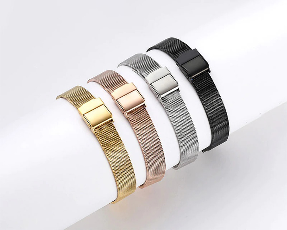 Декоративную функцию ремешок также играет вполне успешно. При изготовлении браслета производитель применил «миланское плетение», применяющееся при изготовлении ювелирных украшений. Проволока, из которой сплетен браслет, имеет эффектно смотрящееся защитное покрытие – покупателям предлагается 5 вариантов оттенков: