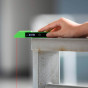Лазерна рулетка має вигляд компактного прямокутника, представлена в чорно-зеленому кольорі.