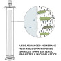 Компактный фильтр эффективно удаляет из воды опасные бактерии и паразитов. Микрофильтрационная мембрана, установленная внутри устройства, способна очистить воду на 99,999999% от всех присутствующих в ней микроорганизмов, в числе которых также кишечная палочка, сальмонелла, лямблии и криптоспоридии, провоцирующие у людей смертельные заболевания.