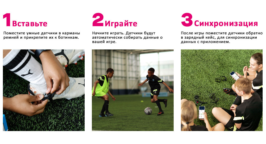 Устройство собирает данные о скорости, ускорениях, замедлениях, количестве касаний мяча и распределении нагрузки на правую и левую ноги.