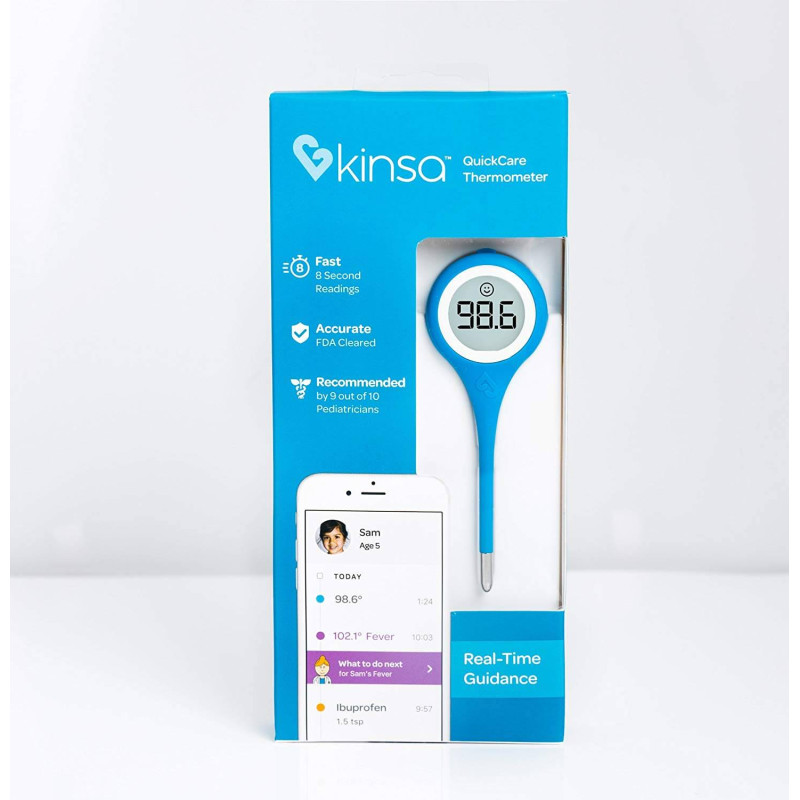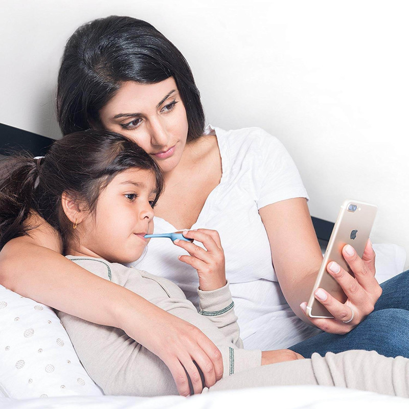 Новейший цифровой измеритель температуры разработан для использования в любом возрасте. Его преимущество в синхронизации данных со смартфоном с помощью приложения Kinsa. Температура измеряется в течении 8 секунд и тут же отправляется в личную учетную запись смартфона.