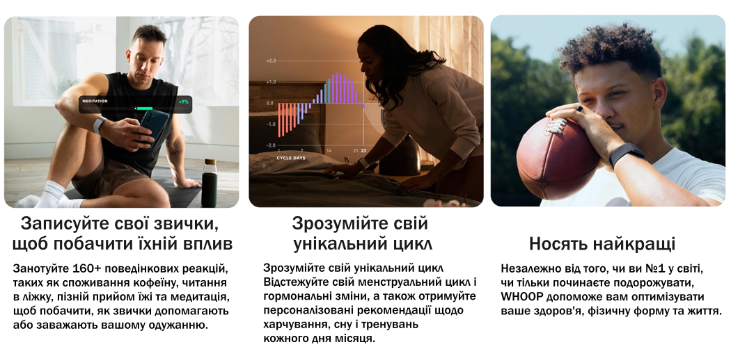 - Спорт и тренировки. Whoop 5.0 подходит для всех уровней физической активности — от любителей до профессиональных спортсменов. Он помогает избежать переутомления и травм, подсказывая, когда лучше отдохнуть.